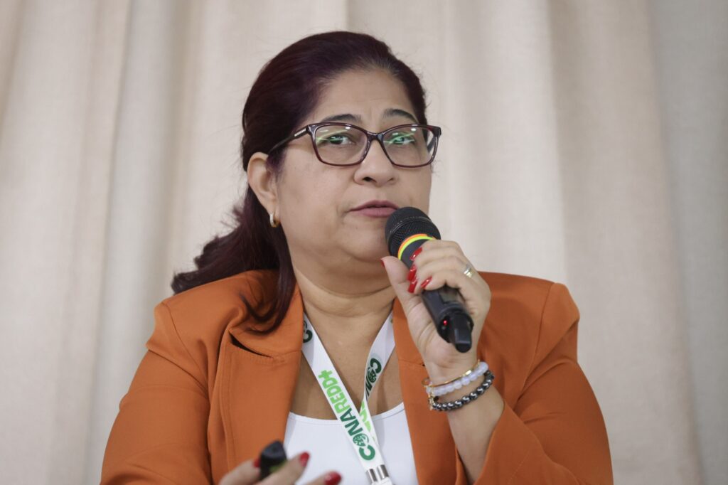 A secretária extraordinária dos Povos Indígenas, Francisca Arara, destacou a importância da participação do Acre nos espaços de discussão sobre a repartição de benefícios de REDD+.